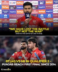 Shreyas Iyer said that “we have lost the battle not the war” after they lost to RCB badly and now they are in the final. MI tried well they fell short by 15 – 20 runs.